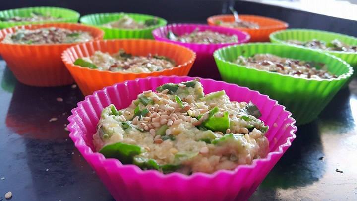 Со една голема лажица убаво соединете ја смесата и ставете ја во калапчиња за мафини. Јас користам гумени калапчиња и навистина сум презадоволна затоа што се практични и за чување, но и за печење и миење, воопшто не лепат.