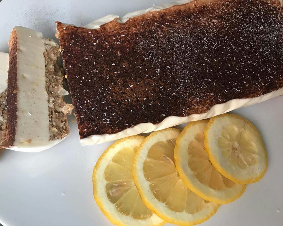 За подготовка на белиот фил најпрвин загрејте го млекото. Претходно подгответе го желатинот така што ќе го растворите со 2 лажици ладна вода и ќе го оставите да стои околу 10-тина минути. Кога желатинот ќе ја впие водата, додадете го во загреаното млеко, но внимавајте да не врие и убаво мешајте дури не се растопи целосно. Тргнете од оган и додете го сокот од лимон и стевиата и убаво уште еднаш измешајте. Прелијте ја тортата со филот и одозгора наросете малку какао.