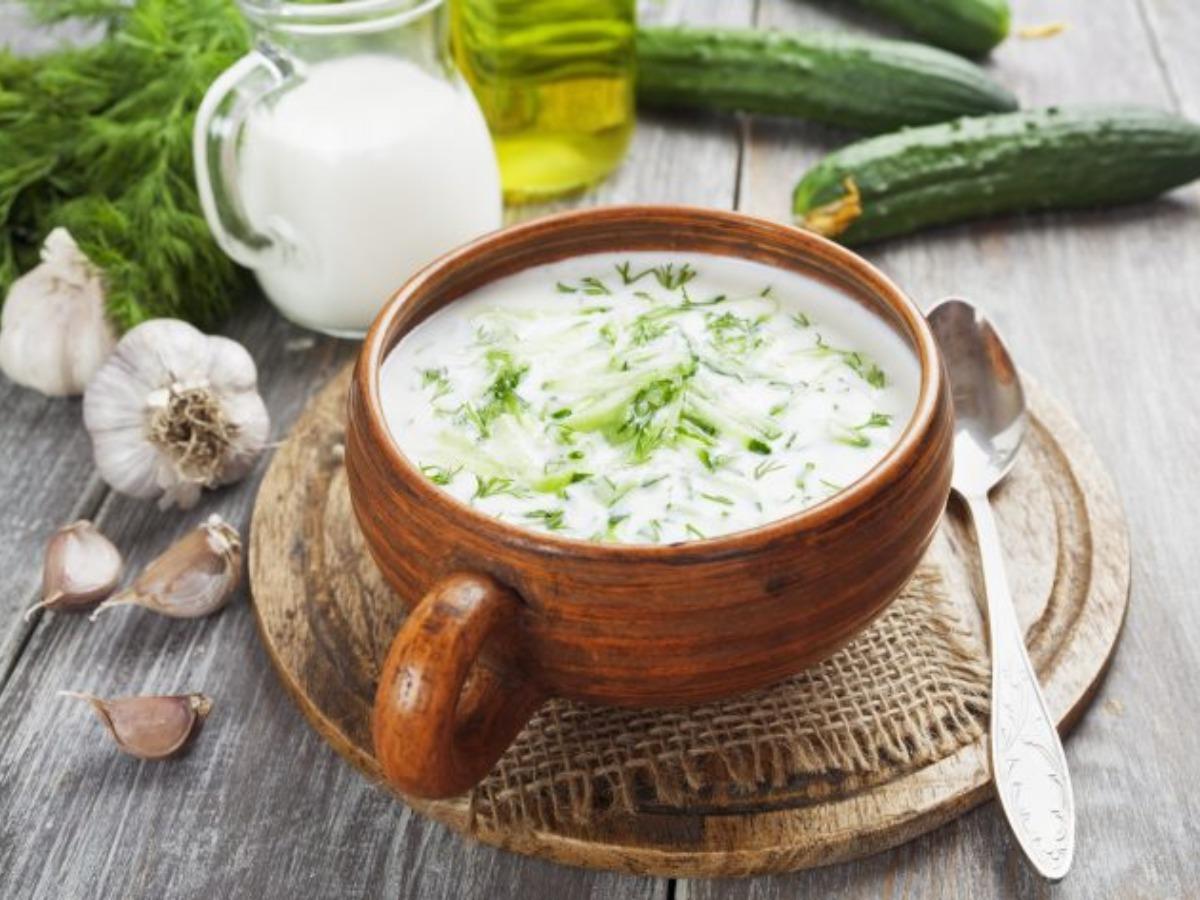 Изрендајте 1 краставица и измешајте ја заедно со околу 200-300 g кисело млеко, додадете зачини по желба (сол, лук, магдонос), на крај додадете околу 30 g непечени и несолени индиски ореви.