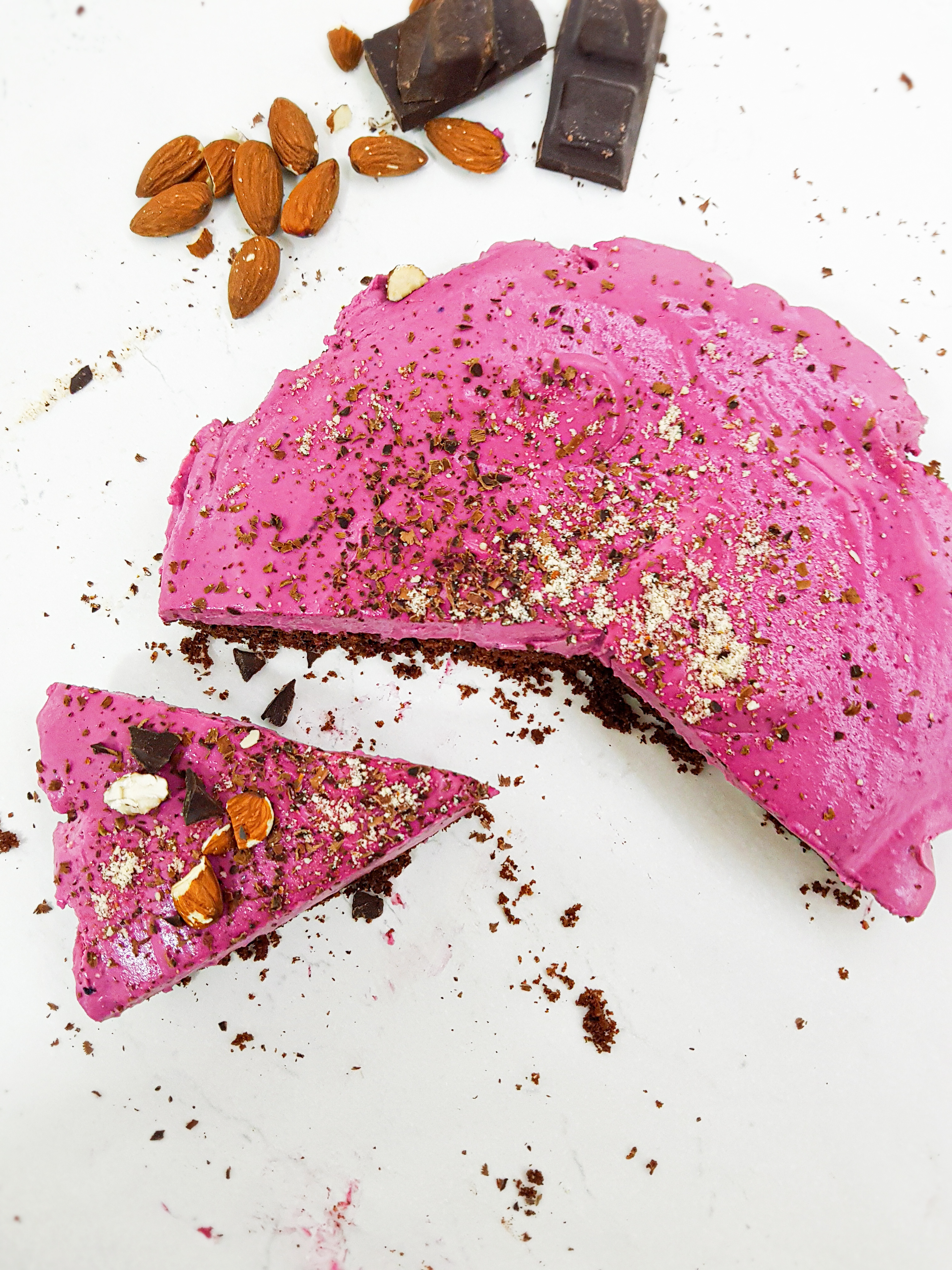 Кора: брашното и коксовиот шеќер најпрвин измешајте ги заедно, потоа во друг сад изматете го јајцето и во него додадете го растопениот путер, ванилата и растопеното чоколадо. На крај измешајте ја оваа смеса со брашното и шеќерот и убаво соединете. Истурете ја кората во кружен плех. Ако имате таков со обрач е најдобро за да можете после лесно да го извадите и да го сечете колачот. Внимавајте плехот да не е многу голем (јас користев мало кружно плехче).