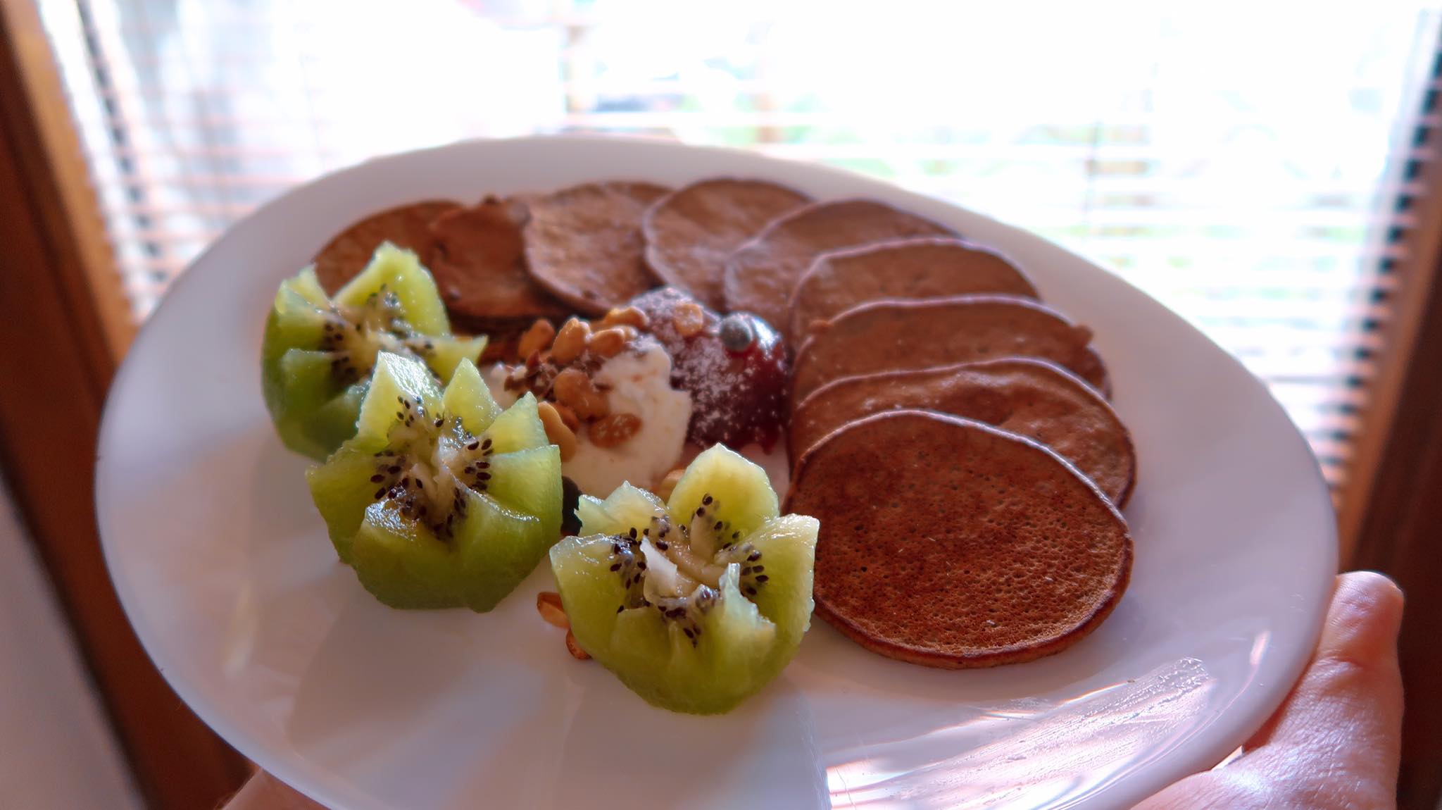 Декорирајте по ваш избор! Јас ставив малку џем од Берово (здрав без шеќер) павлака и мешавина на јаткасти и семки и киви.