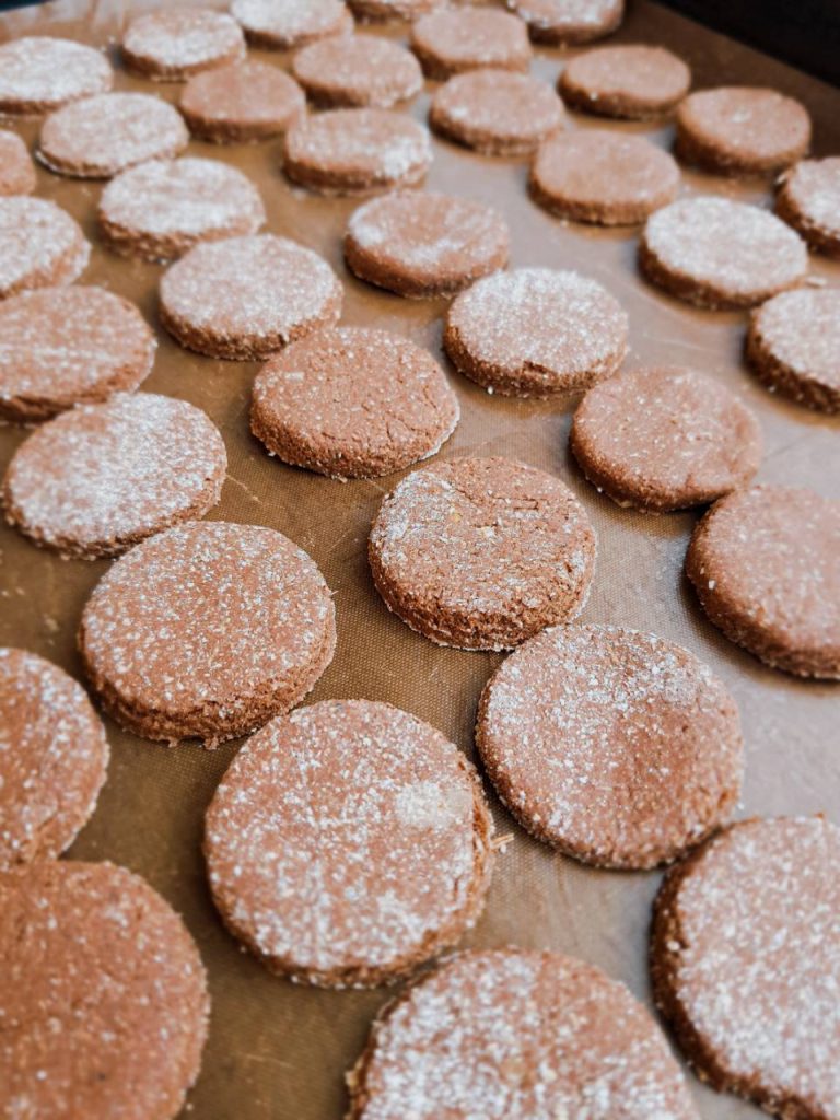 Ги печев на 160-180˚С околу 12-15 минути. Внимавајте и следете ги, сепак сите рерни се различни. Не им треба многу време, ако ги оставите предолго ги бидат потврди.