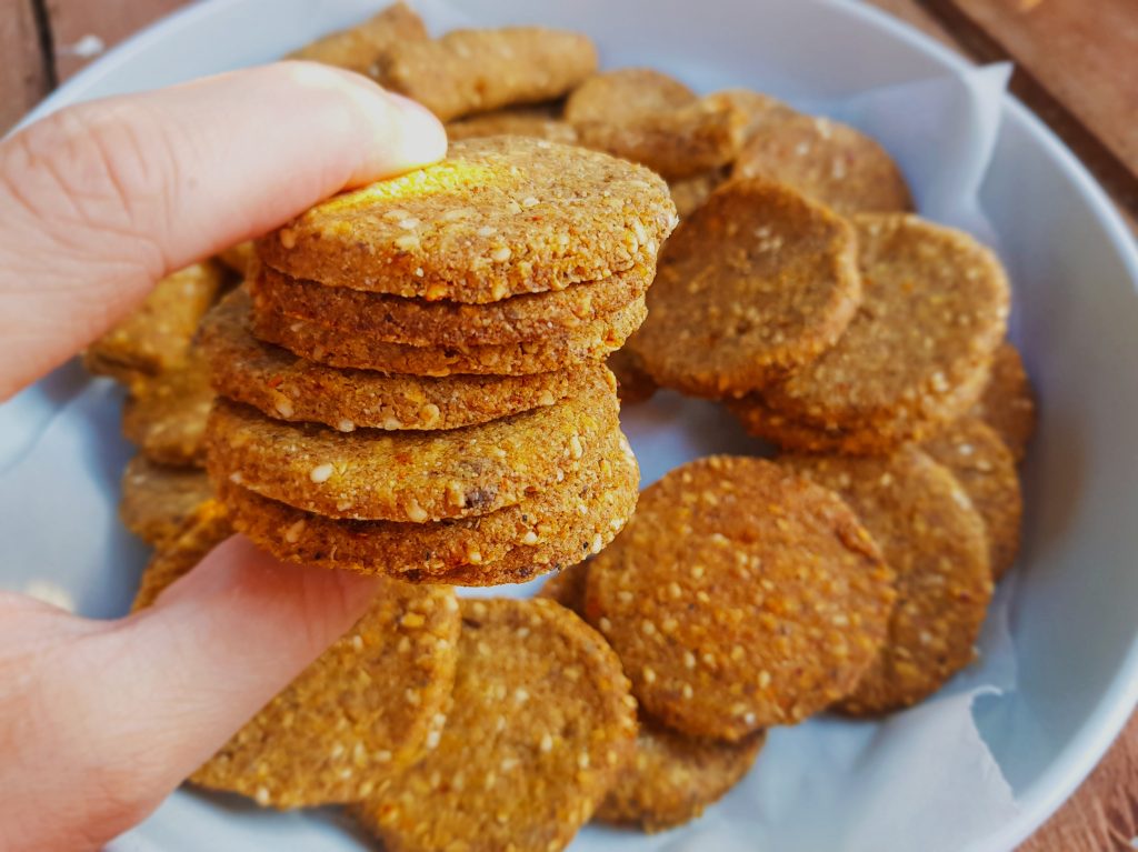 Сите суви состојки ги измешав заедно во длабок сад. Кога смесата беше рамномерно измешана ја додадов водата и стопениот путер па смесата се направи топче кое може да се обликува. Го ставив на хартија за печење и со сукало извлеков тенка кора. Со помош на мала чаша направив кругови. Печев во загреана рерна на 180С околу 20-тина минути.
