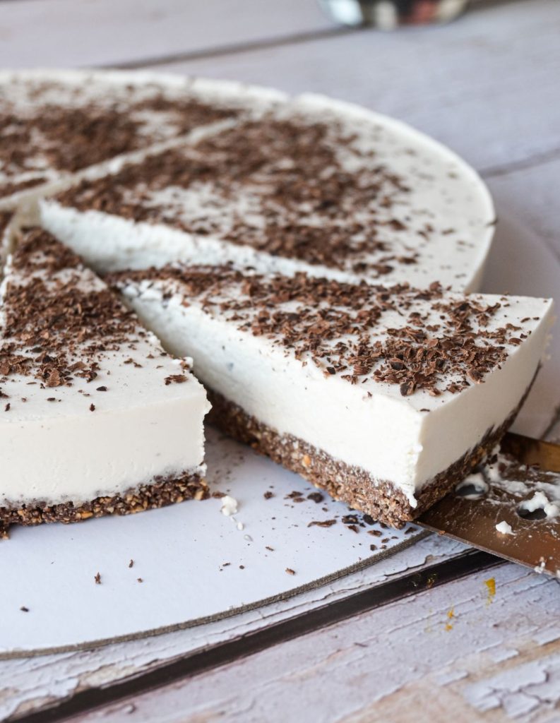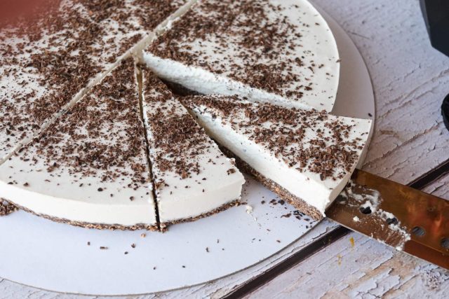 Смесата кога ќе се изблендира не е нешто густа ама не се плашете, заради кокосовото млеко и масло ќе се стегне во фрижидер многу брзо и ќе биде супер за сечење.