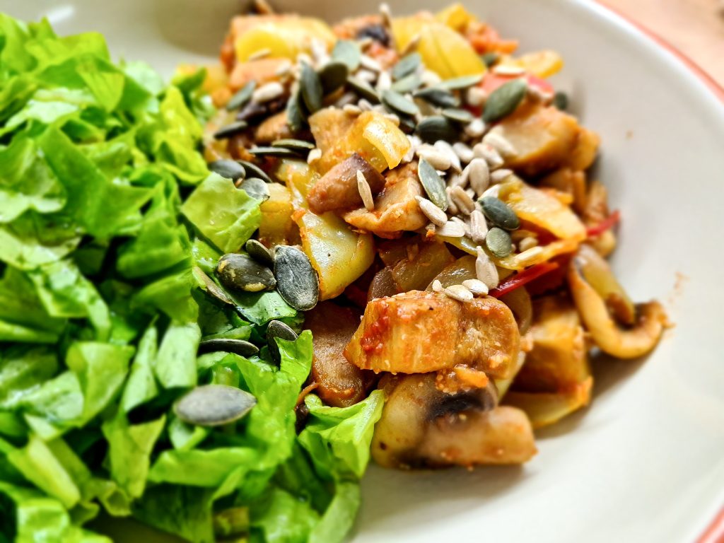 Комбинирајте го задолжително овој оброк со зелена салата и одозгора наросете малку семки од тиква и сончоглед.