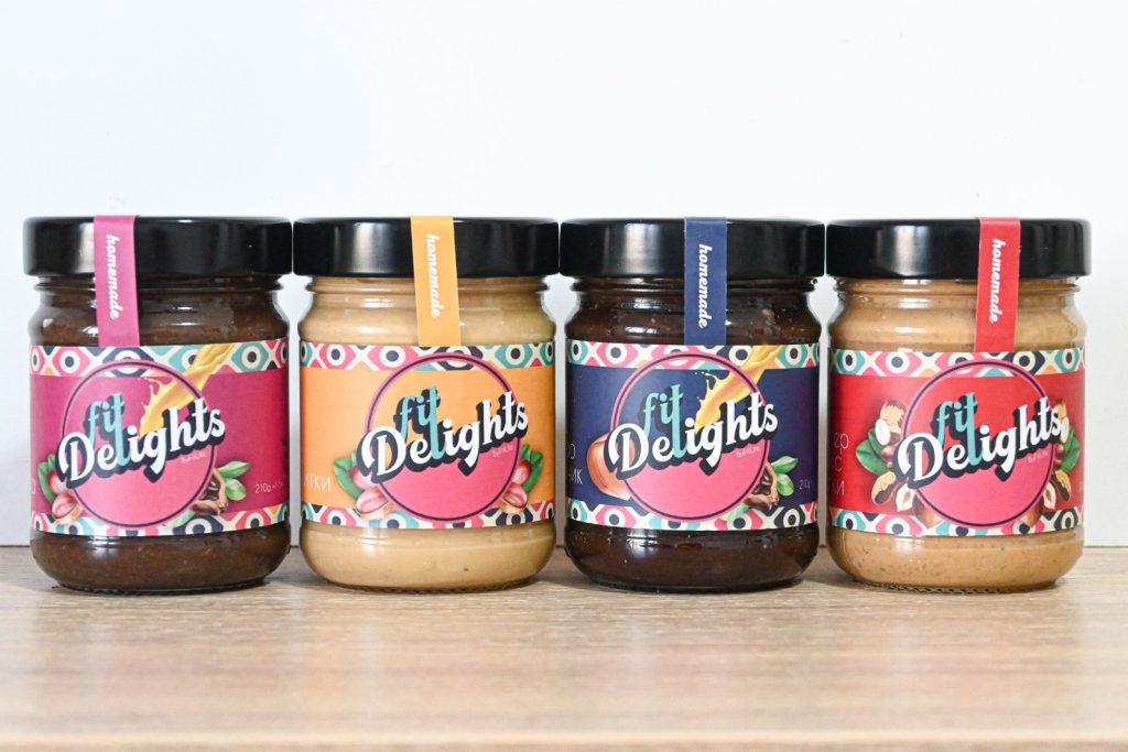 100% приоден путер од кикиритки без никакви додатоци и путер од микс од јатки (мешавина од кикиритки, лешници и бадеми) можете да си нарачате од нашатa линија здрави фит производи – Fit Delights.
