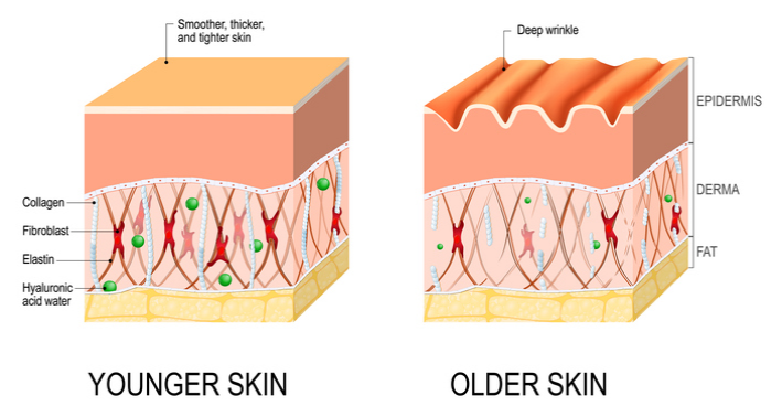 Колагенот игра значајна улога во зајакнување на кожата затоа што како што телото старее тоа станува помалку способно да произведува колаген, што доведува до сувост на кожата и појава на брчки (прочитајте повеќе).