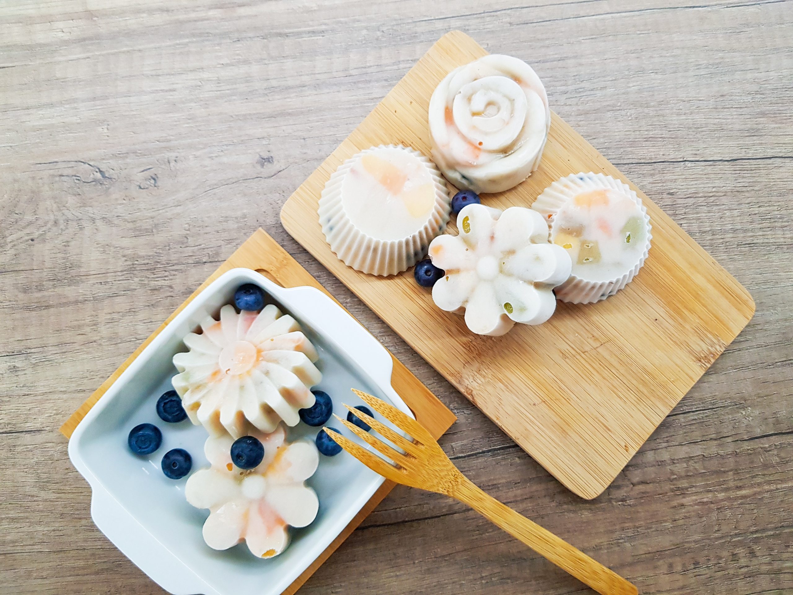 Ги блендирате бананата и јогуртот и течноста ја ставате во некој сад (ако имате силиконски калап ќе биде супер лесно после за вадење, а можете и во калапи за мафини).