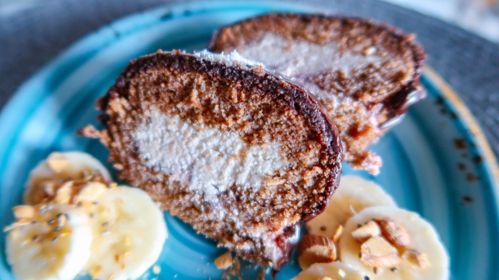 Сите состојки ставете ги во блендер или сецко и добро измешајте ги. Ако користите мед ќе добиете смеса густа како за чизкејк, а ако користите некој сув засладувач, додајте малку млеко плус.